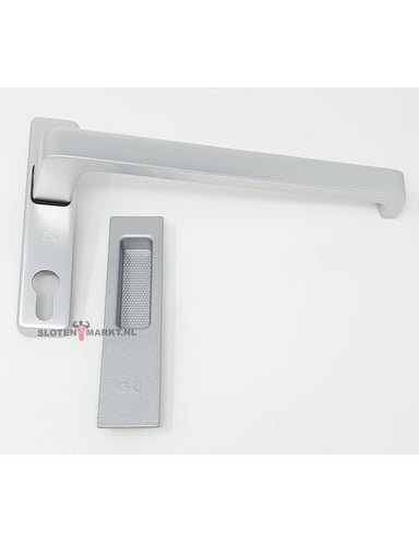 GU schuifpui beslag met voor de binnen en buitenzijde een greep met cilinderuitsparing.